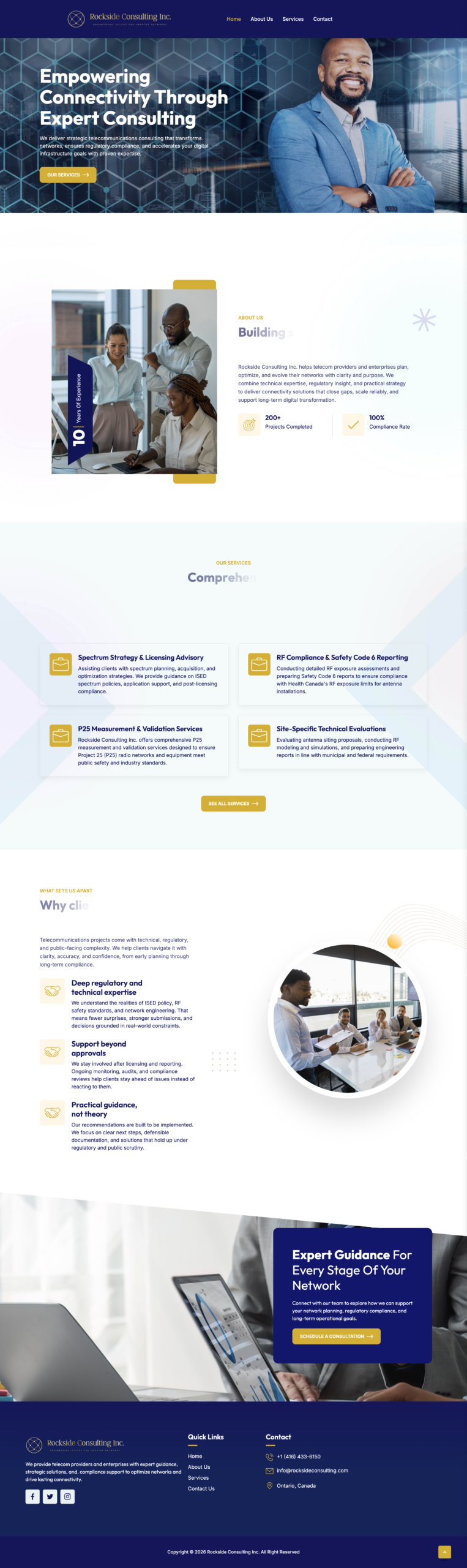 The result is a professional, authority-driven digital presence that reinforces trust and positions Rockside Consulting as a serious technical advisory partner within Canada’s regulatory landscape.